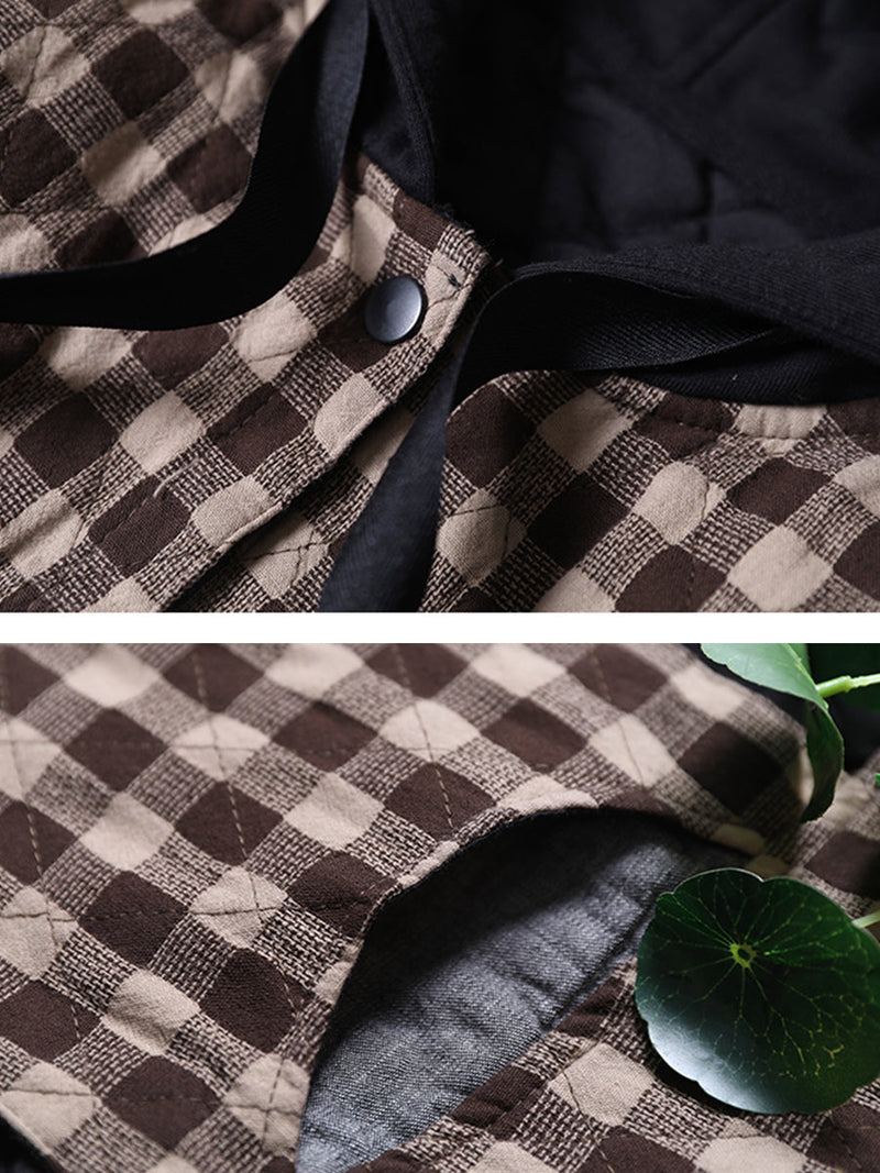 This women's Korean plaid hooded colorblock padded coat is your go-to for fall and winter. The plaid colorblock makes it stand out from other outerwear. the cotton fabric is soft and comfortable for a snug fit. and the hooded collar keeps you warm.