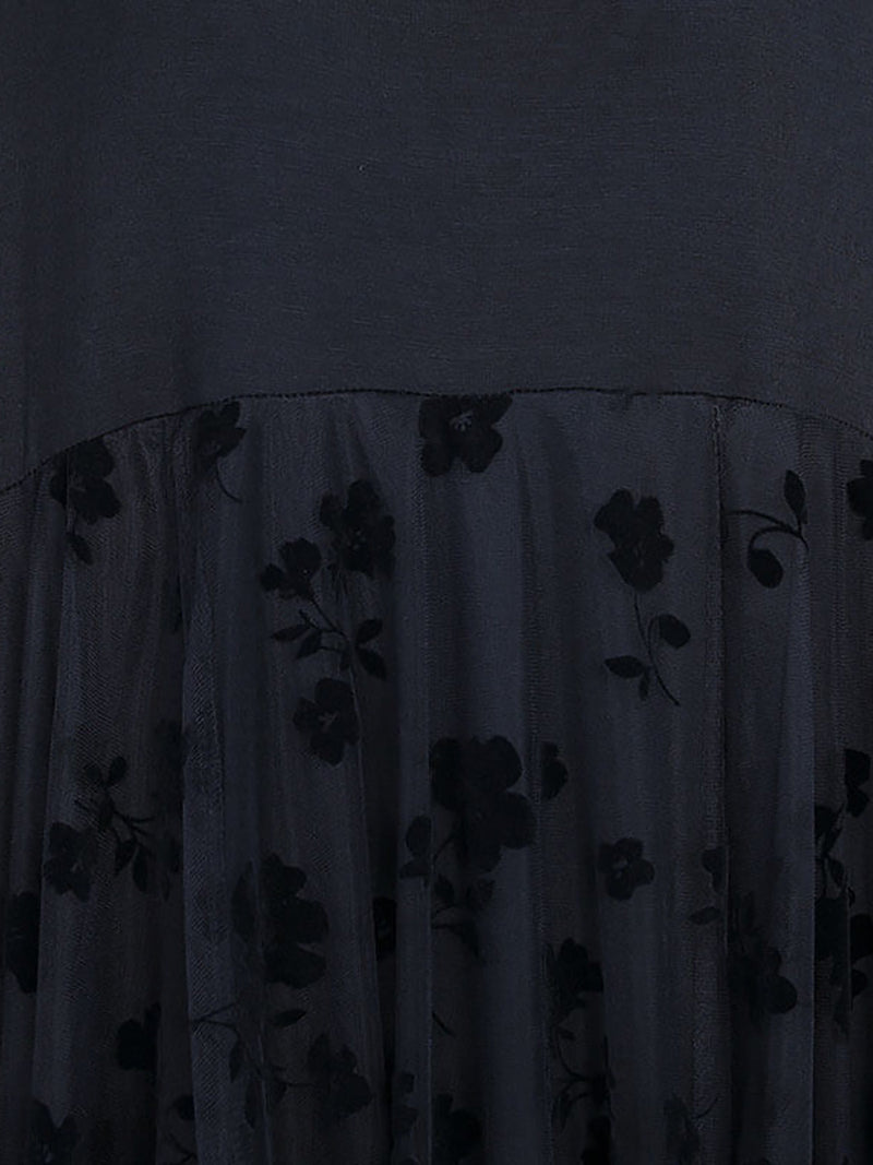 Crafted from 95% viscose and 5% spandex. this sleeveless maxi pinafore dress features an O-neck design and delicate floral patterns. The ankle-length silhouette is enhanced by elegant lace detailing. making it an ideal choice for summer wear.