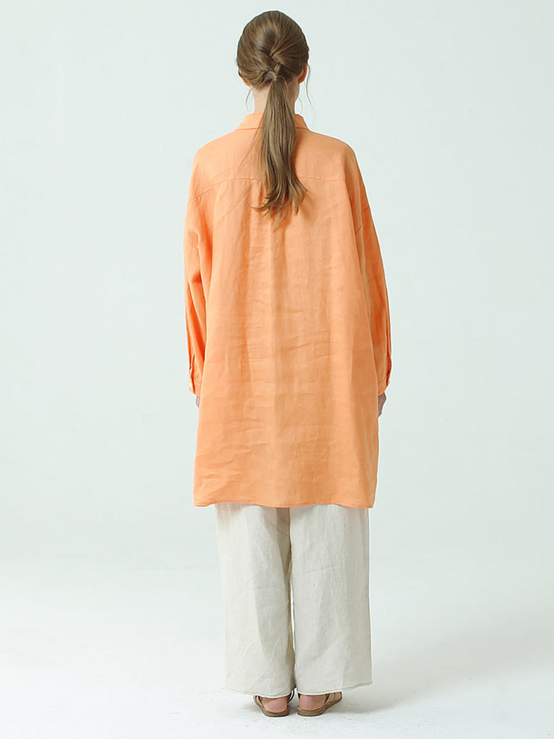 Plus Size WomenLinen Patchwork Plaid Long Sleeve Shirt