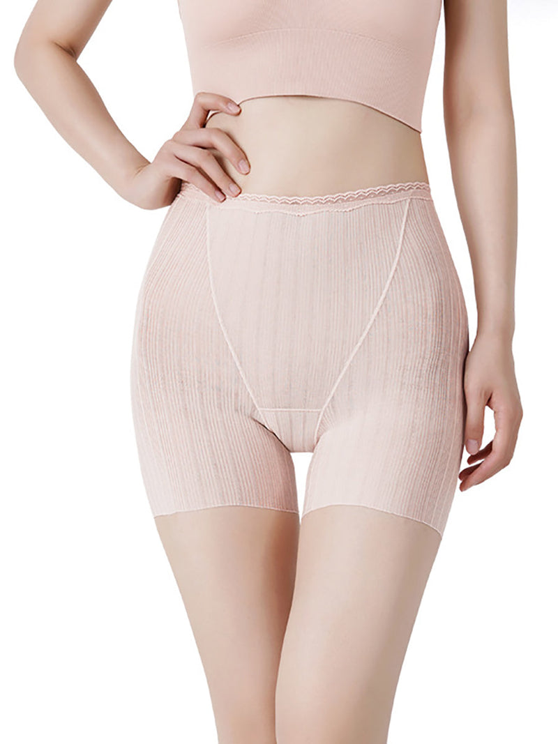 Women Pure Color Lace Waist Safety Bottom Pants