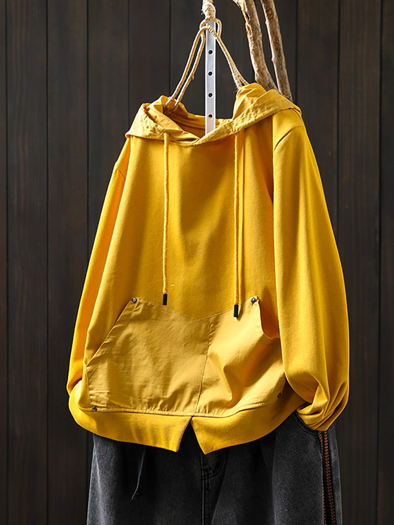 Women Retro Autumn Pure Color 100%Cotton Hoodie