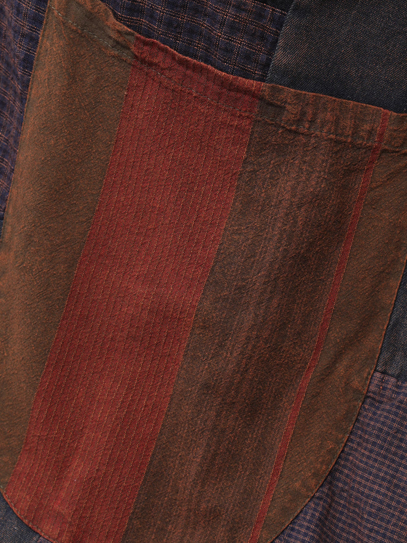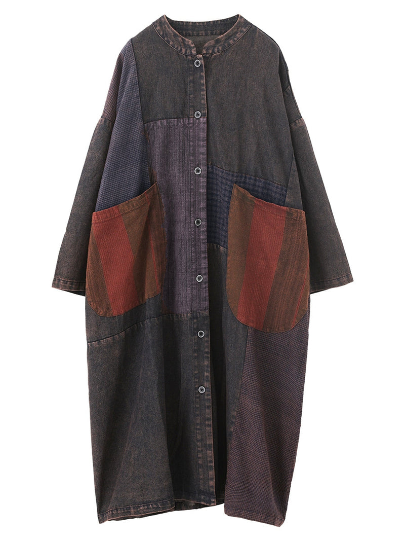Women Retro Autumn Spliced Stand Collar Cotton Coat