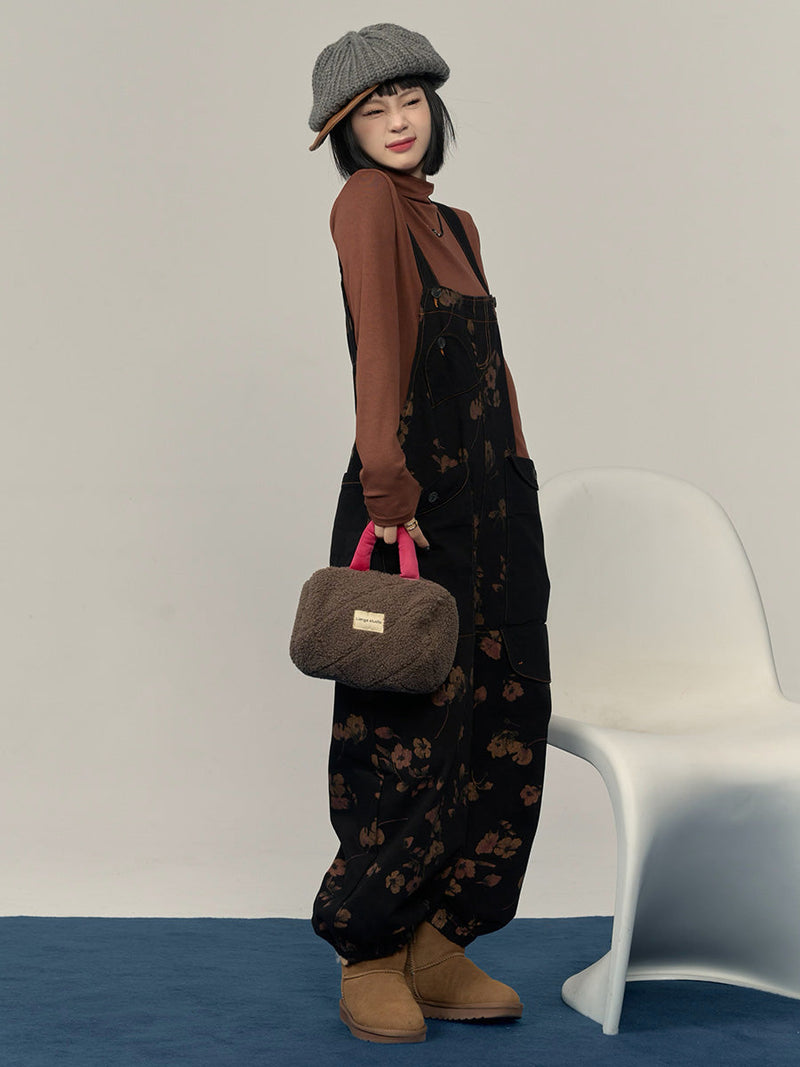 This jumpsuit is made of cotton and features a retro flower pattern. It also includes pockets and has a high waist line. With a thickness that is standard. it is suitable for the winter and autumn seasons. Additionally. the pants are full length. providing maximum coverage.