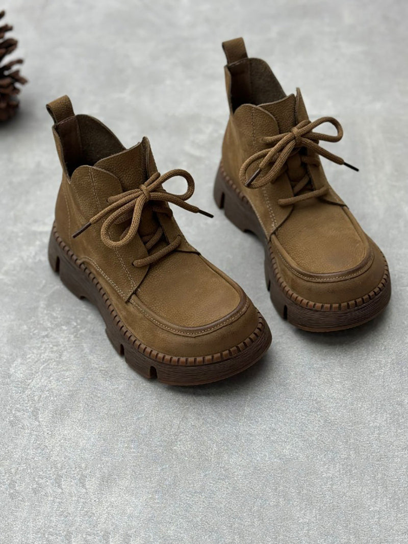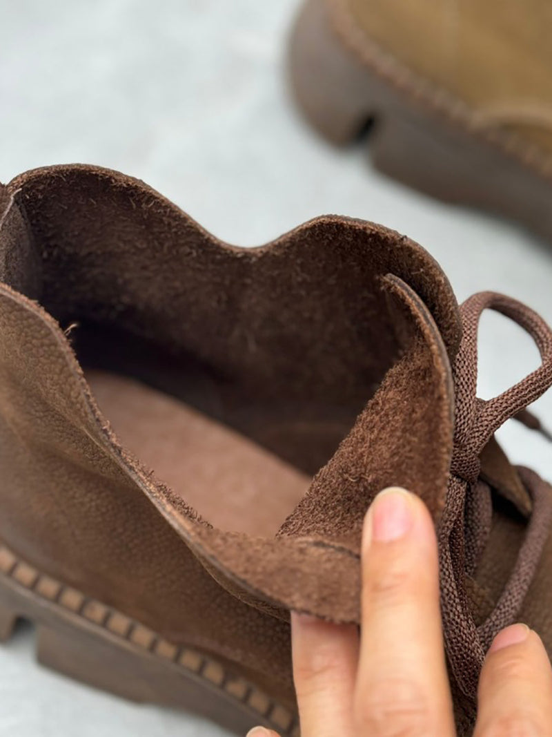 Women Retro Genuine Leather Platfrom Ankle Boots