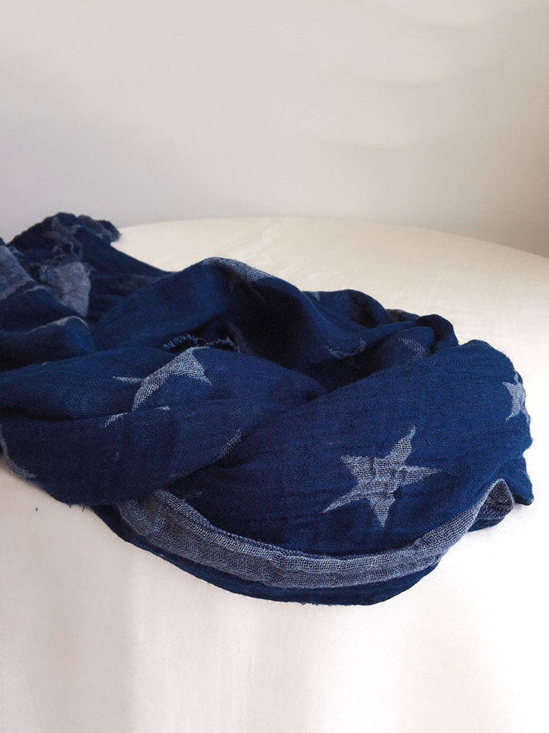 Women Retro Geometric Batik Blue Tassel Shawl Scarf