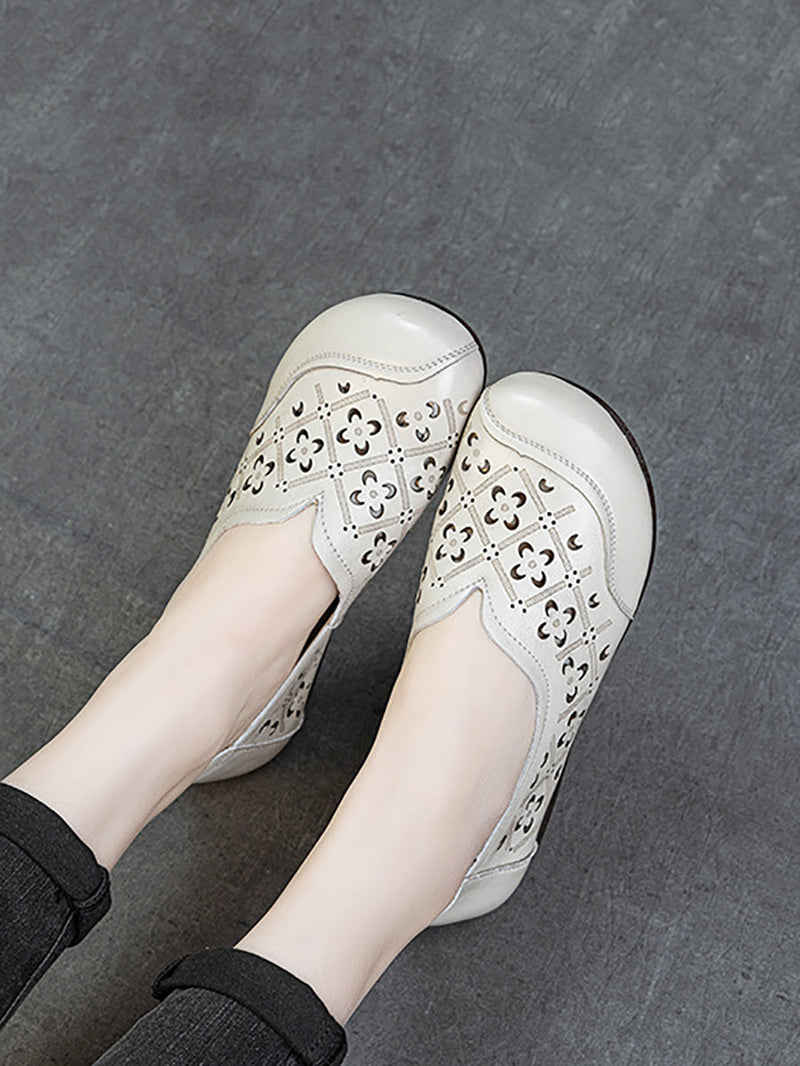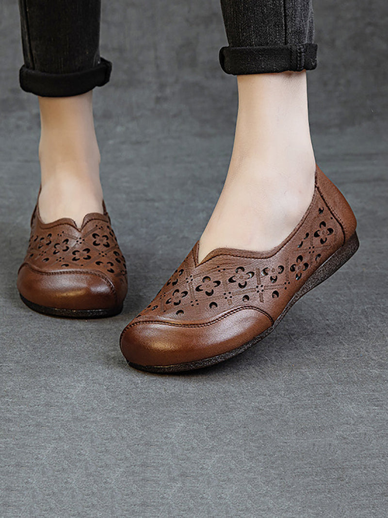 Women Soft Genuine Leather Hollow Out Low Heel Shoes