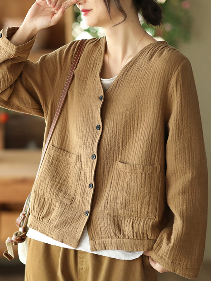 This shirt coat is carefully composed from 100% cotton and features a v-neck collar and a plain pattern. To complete this look. it includes full-length sleeves with a regular fit and two stylishly-placed pockets and buttons. Perfect for springtime wear.