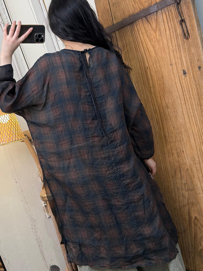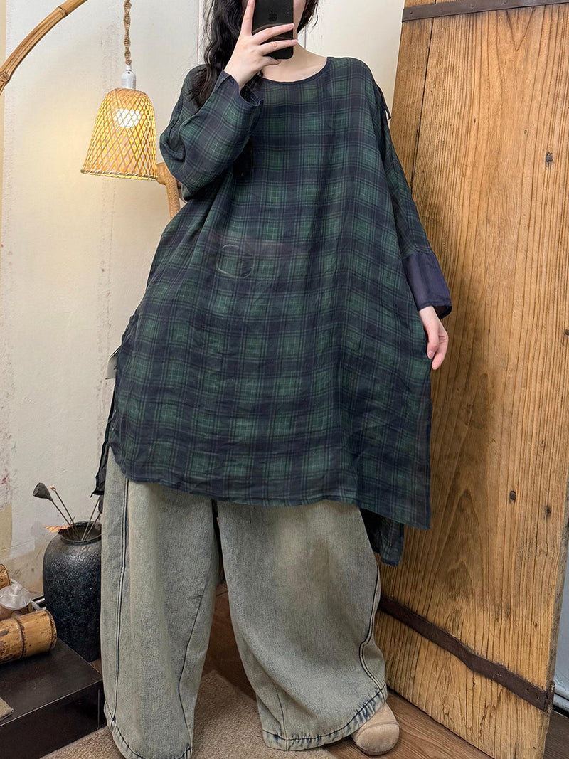 Plus Size Women Spring Artsy O-Neck Flower Ramie Shirt