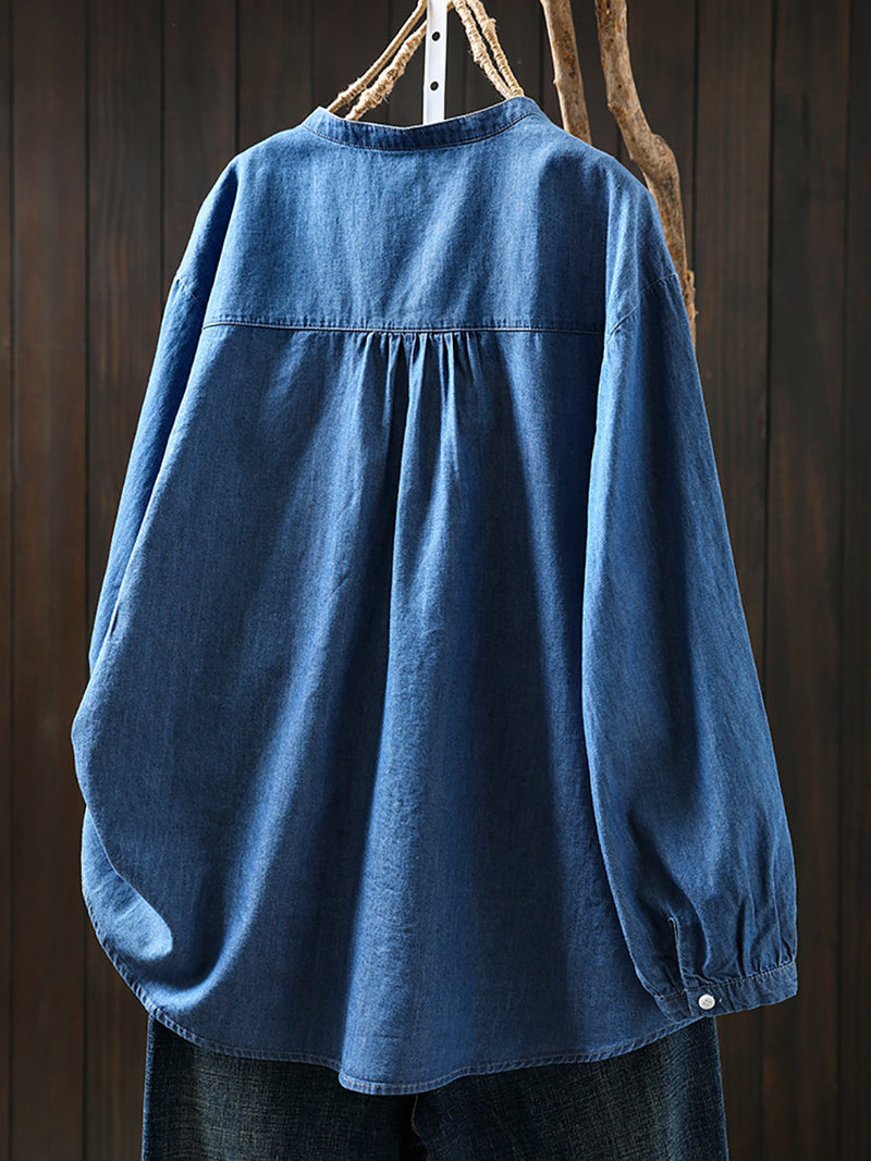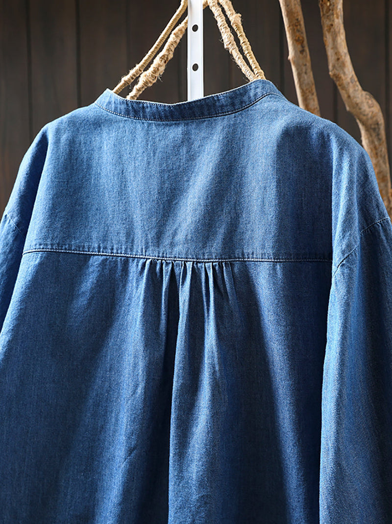 Women Spring Ethnic Embroidery 100%Cotton Shirt