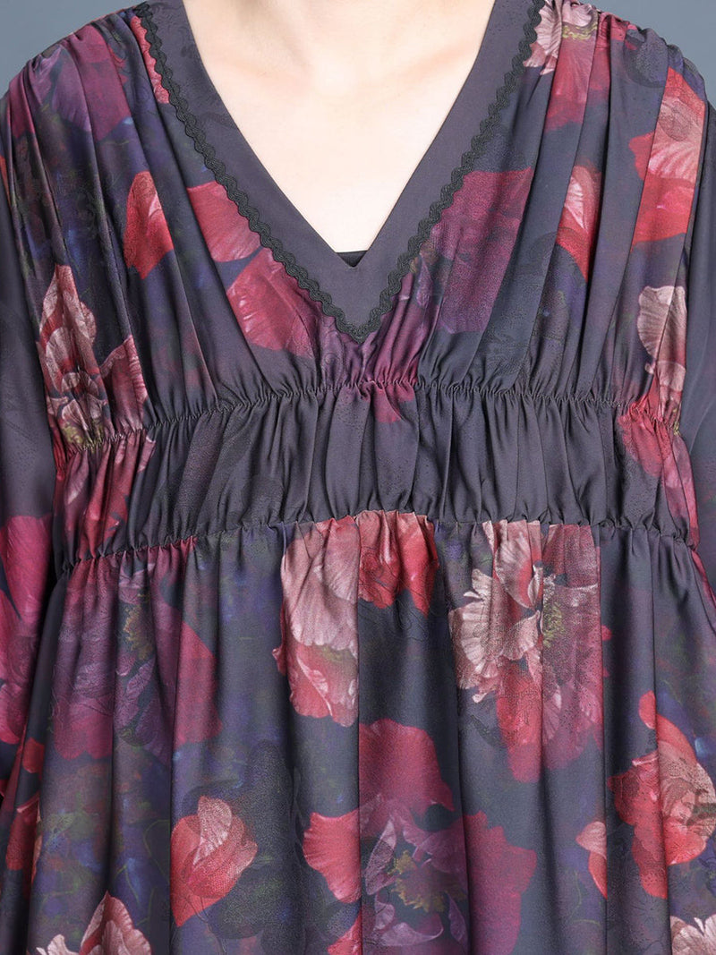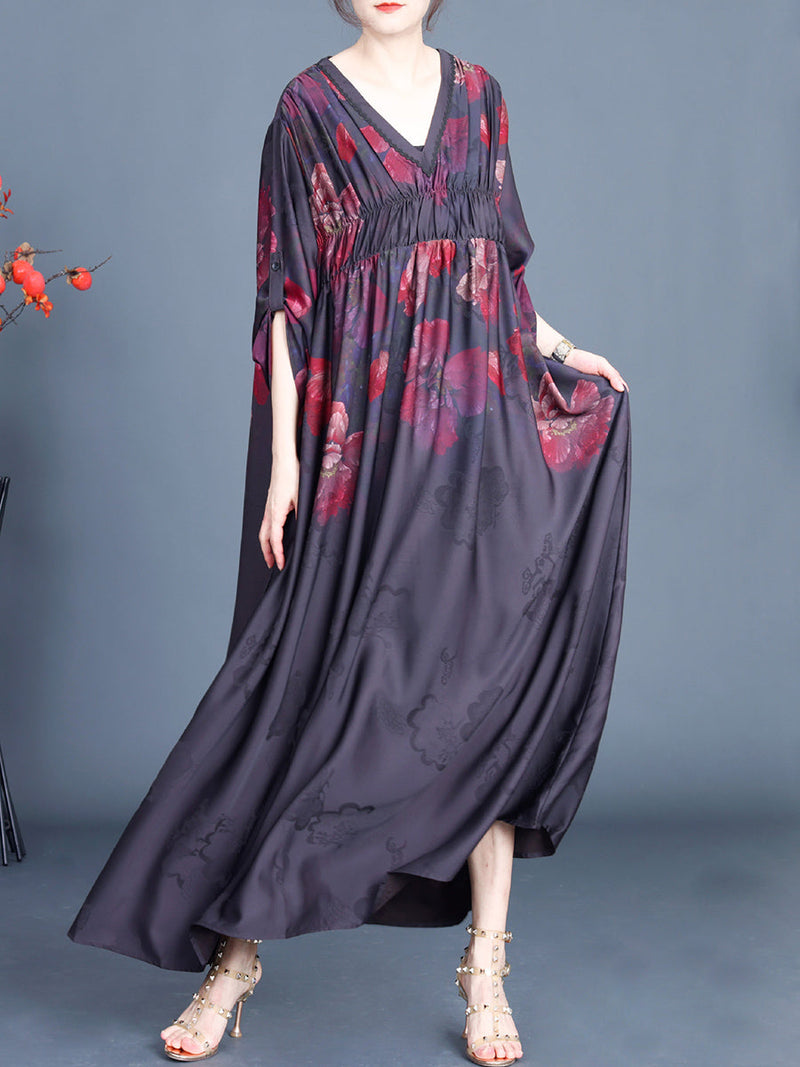 Constructed from 100% jacquard. this maxi dress features a lovely flower pattern and a flattering V-neck collar. The full regular sleeves add a touch of vintage charm. making it the perfect choice for spring and summer seasons.