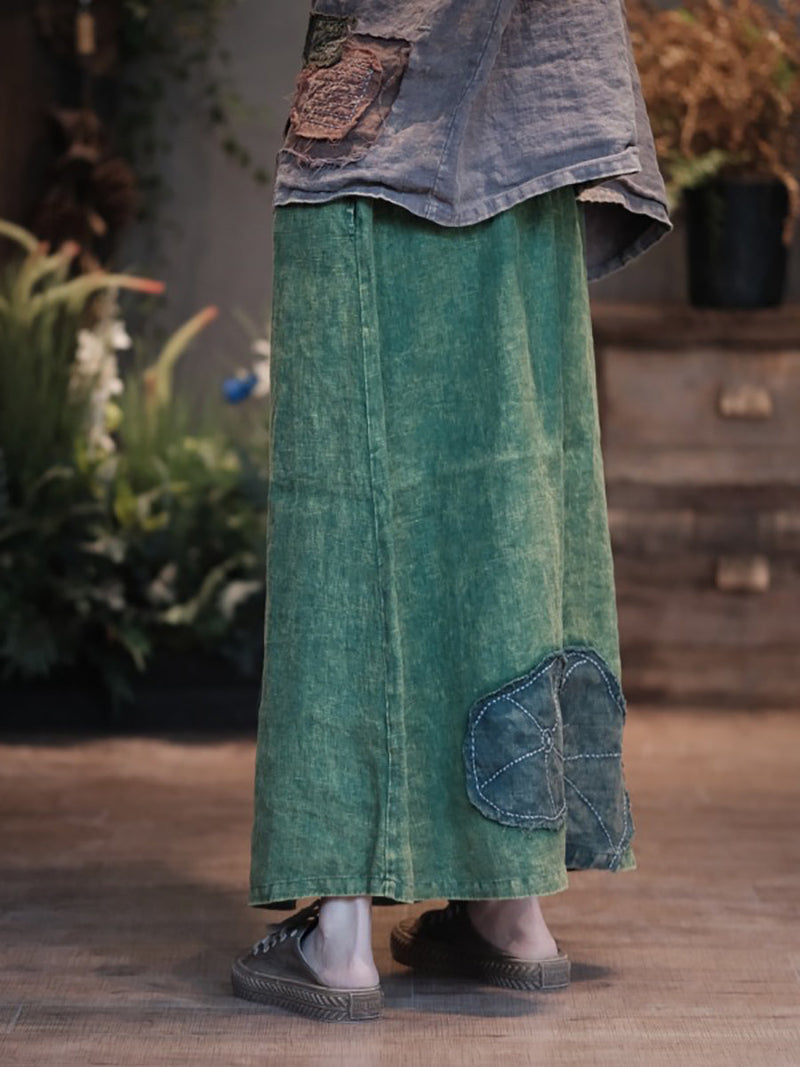 Women Spring Patch Spliced Linen Skirt