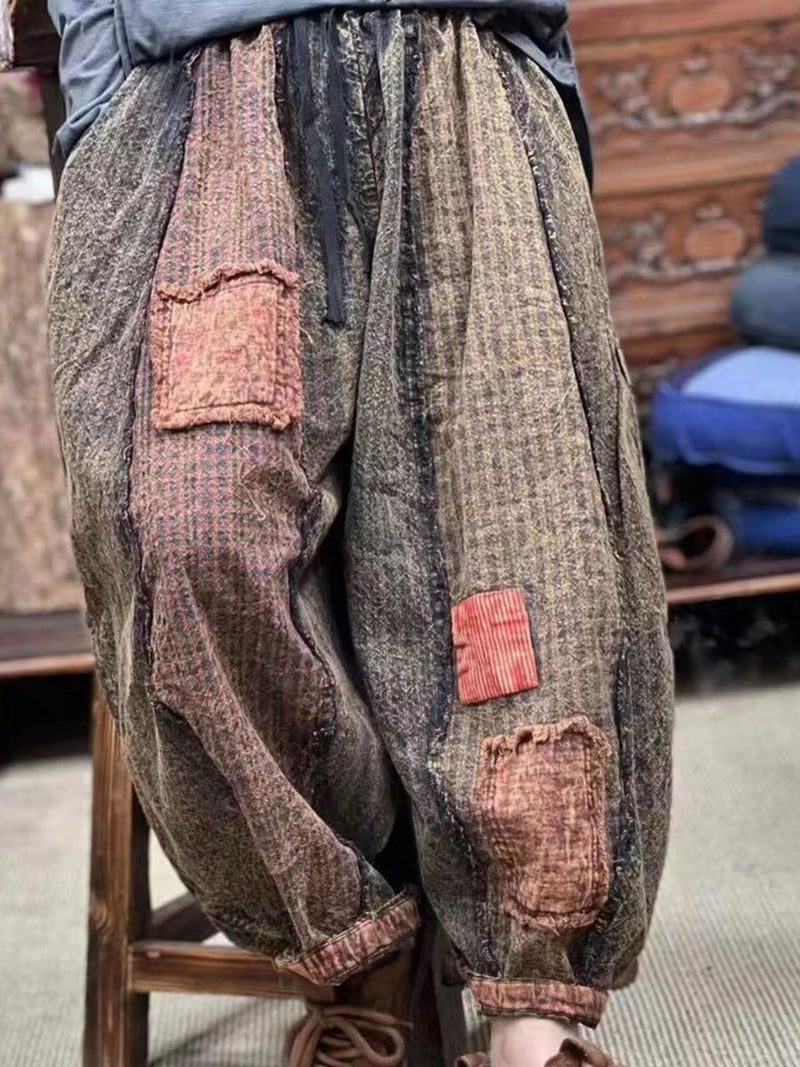 This pair of Women's Spring Retro Spliced Frayed Harem Pants is made from 100% cotton and features an elastic waist. making it a comfortable and stylish option for any season. The unique spliced pattern and full length design add a touch of retro style to your wardrobe. Perfect for the spring. autumn. and summer months. these pants are a must-have for any fashion-forward individual.