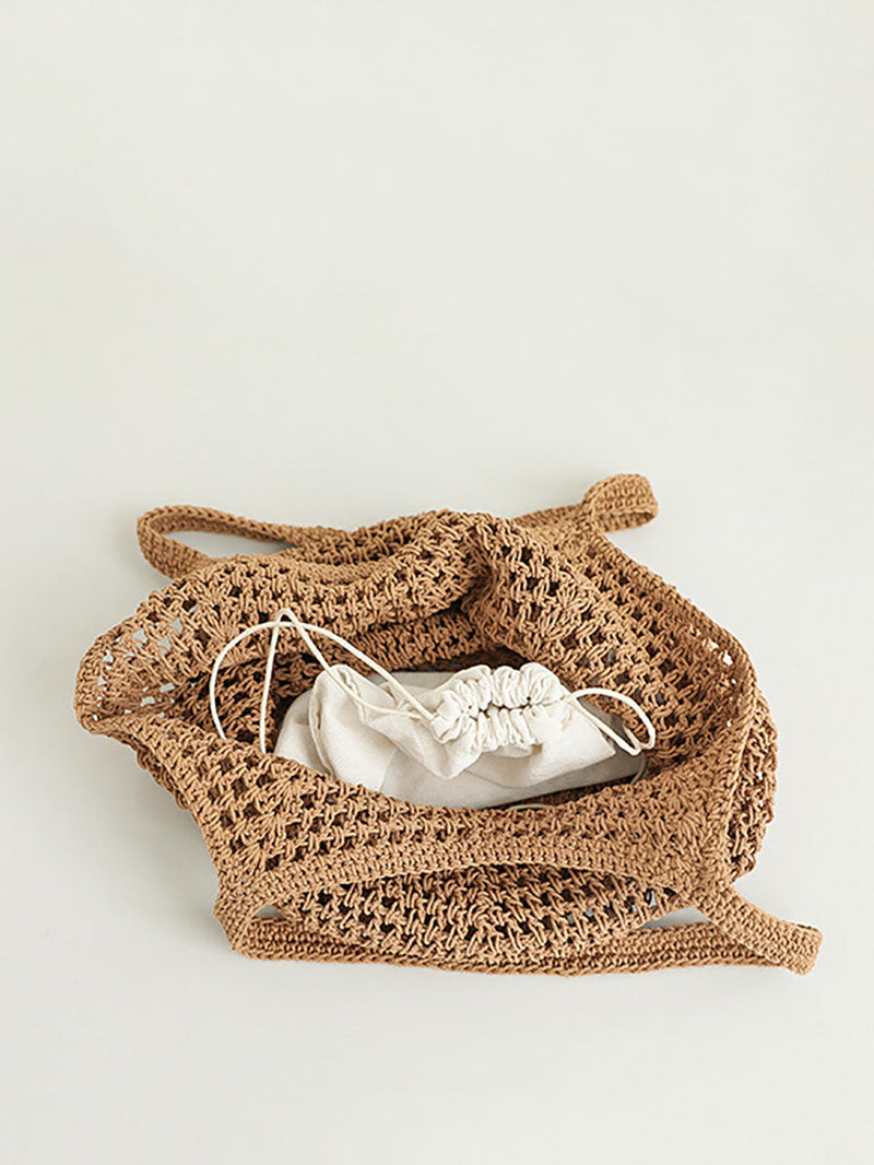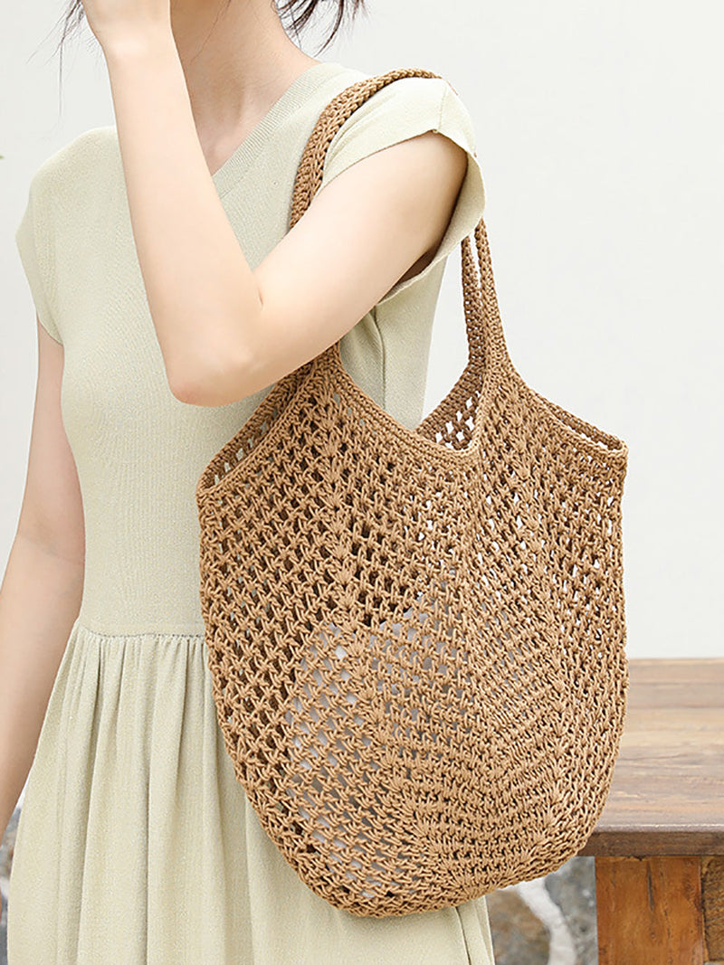 Women Summer Artsy Cutout Knitted Shoulder Bag