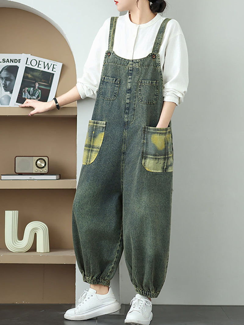 This jumpsuit is made with cotton and features a plaid pattern. The fit is loose. with standard thickness and a high waistline. It has full length pants and is perfect for the spring and summer seasons.
