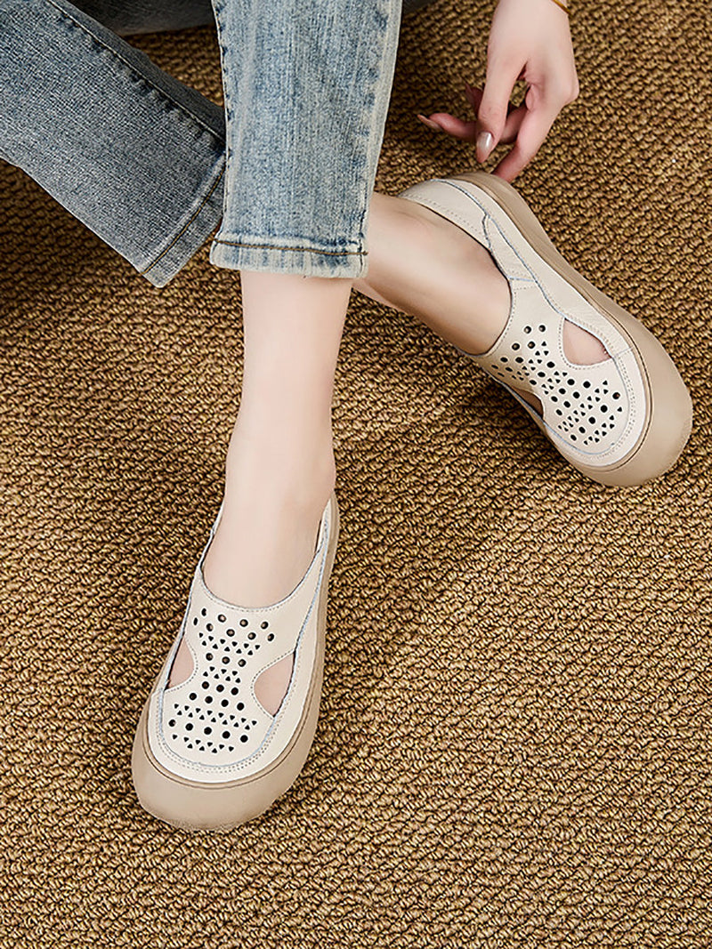 Women Summer Casual Pure Color Hollow Out Flat Shoes