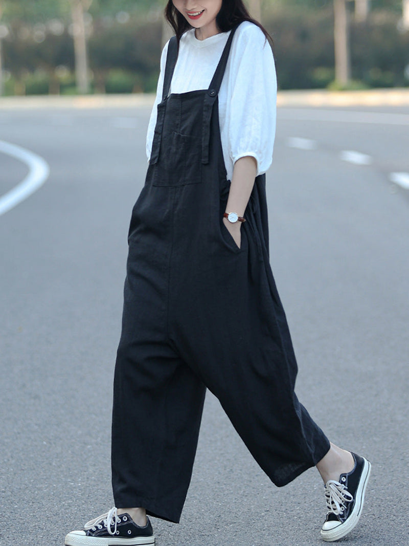 Plus Size Women Summer Casual Pure Color Loose Jumpsuits