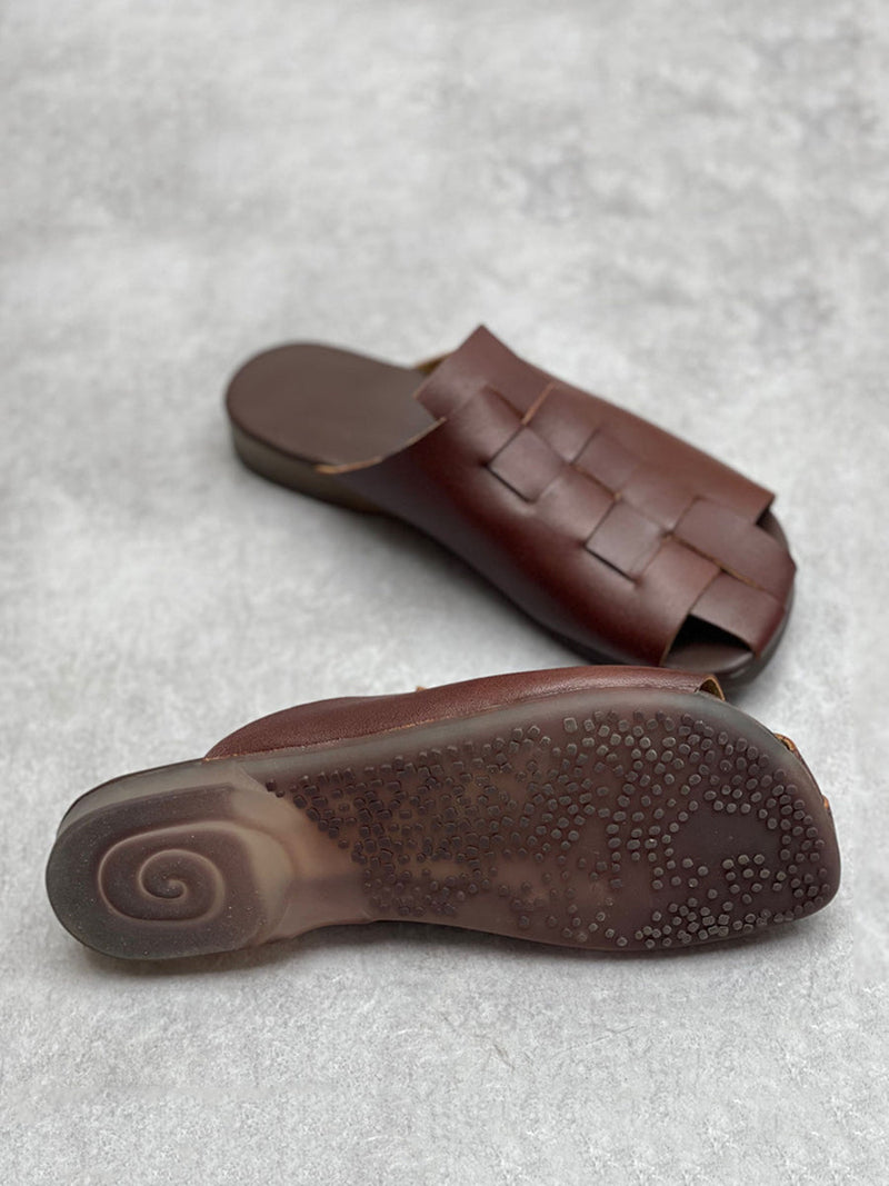 Women Summer Casual Soft Leather Solid Knitted Slippers