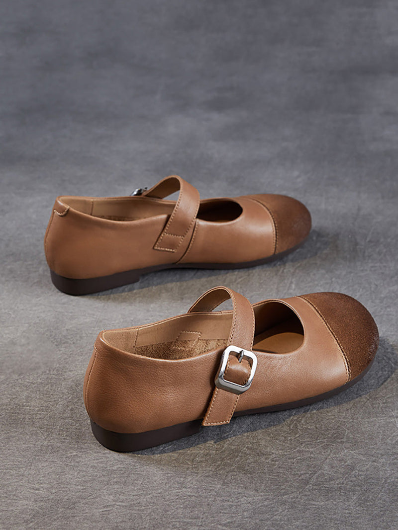 Women Summer Casual Soft Leather Spliced Low Heel Shoes