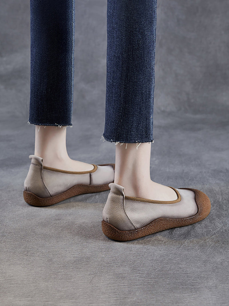 Women Summer Genuine Leather Colorblock Flat Shoes
