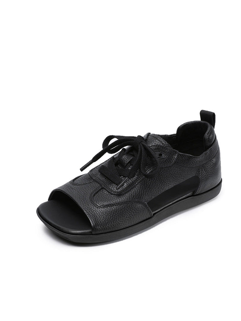 Women Summer Genuine Leather Open Toe Flat Sandals