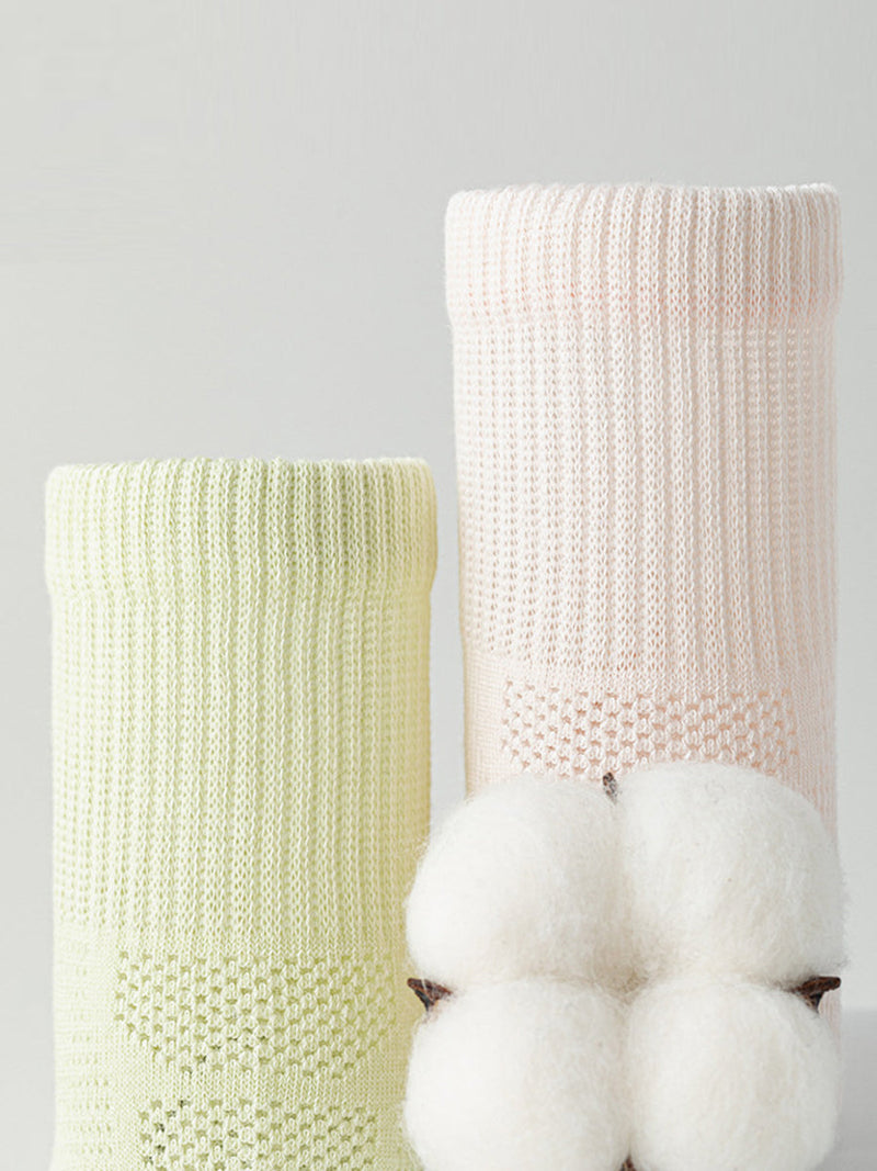 7 Pairs Women Summer Mid-Heel 100%Cotton Pure Color Socks