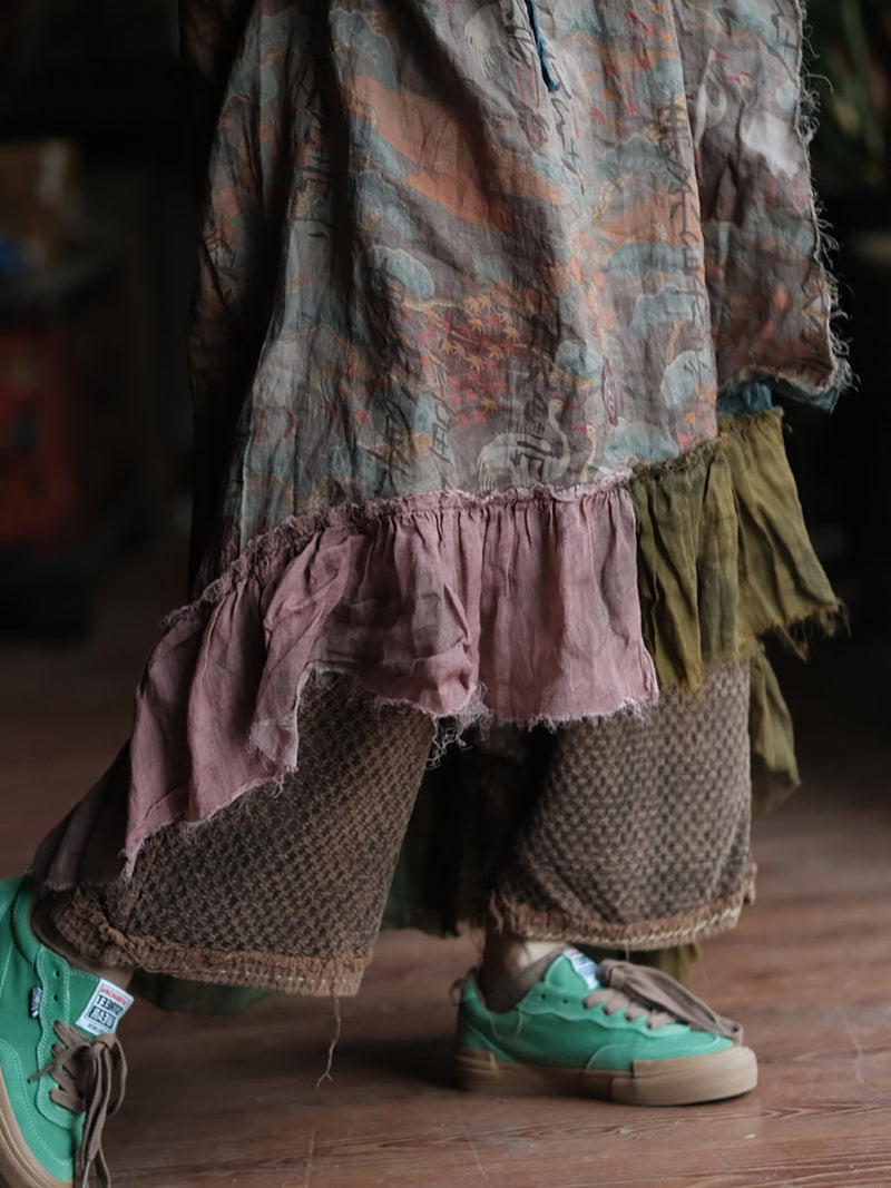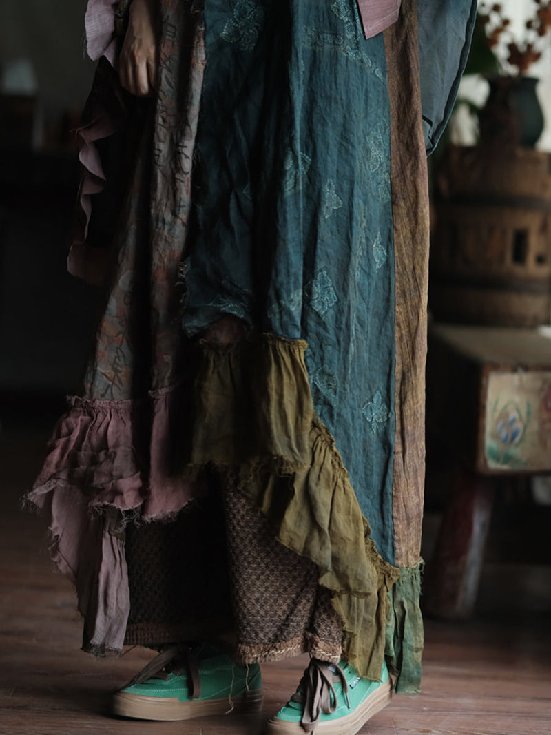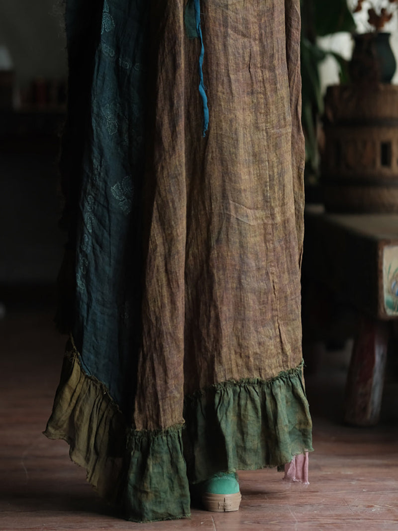 Women Summer Patch Spliced O-Neck 100%Ramie Vest Dress