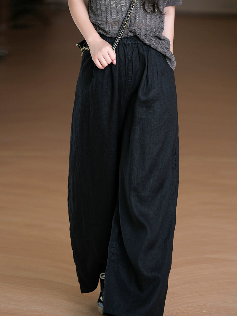 Women Summer Pure Color 100%Linen Straight Pants