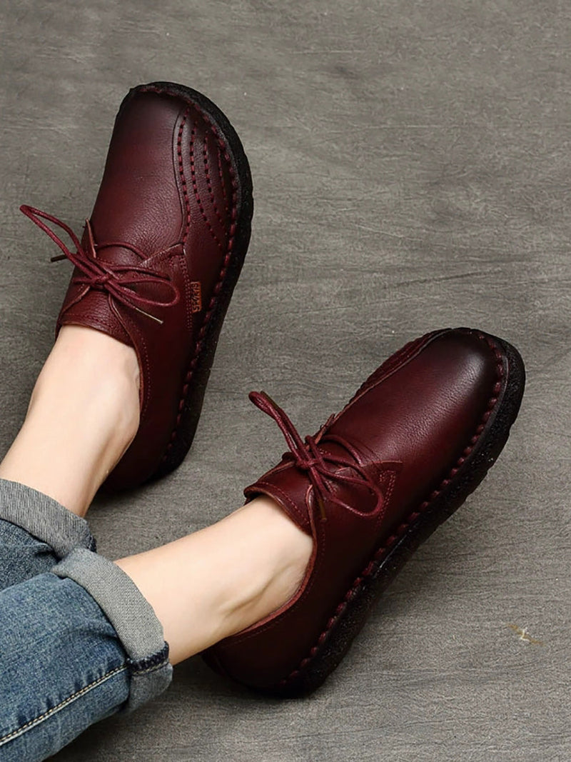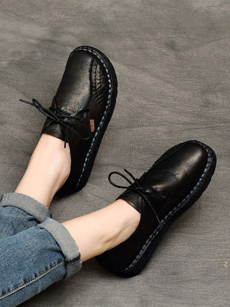 Women Summer Retro Genuine Leather Spliced Flat Shoes