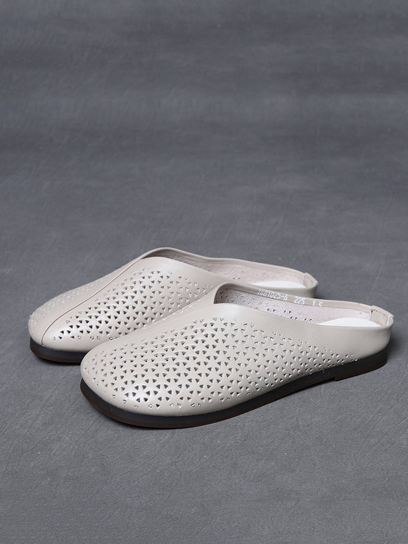 Women Summer Vintage Hollow Out Leather Flat Slippers