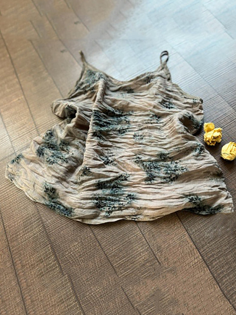 Made from ramie fabric with a floral print. this vintage style vest features an O-neck design and is perfect for the spring and summer seasons.