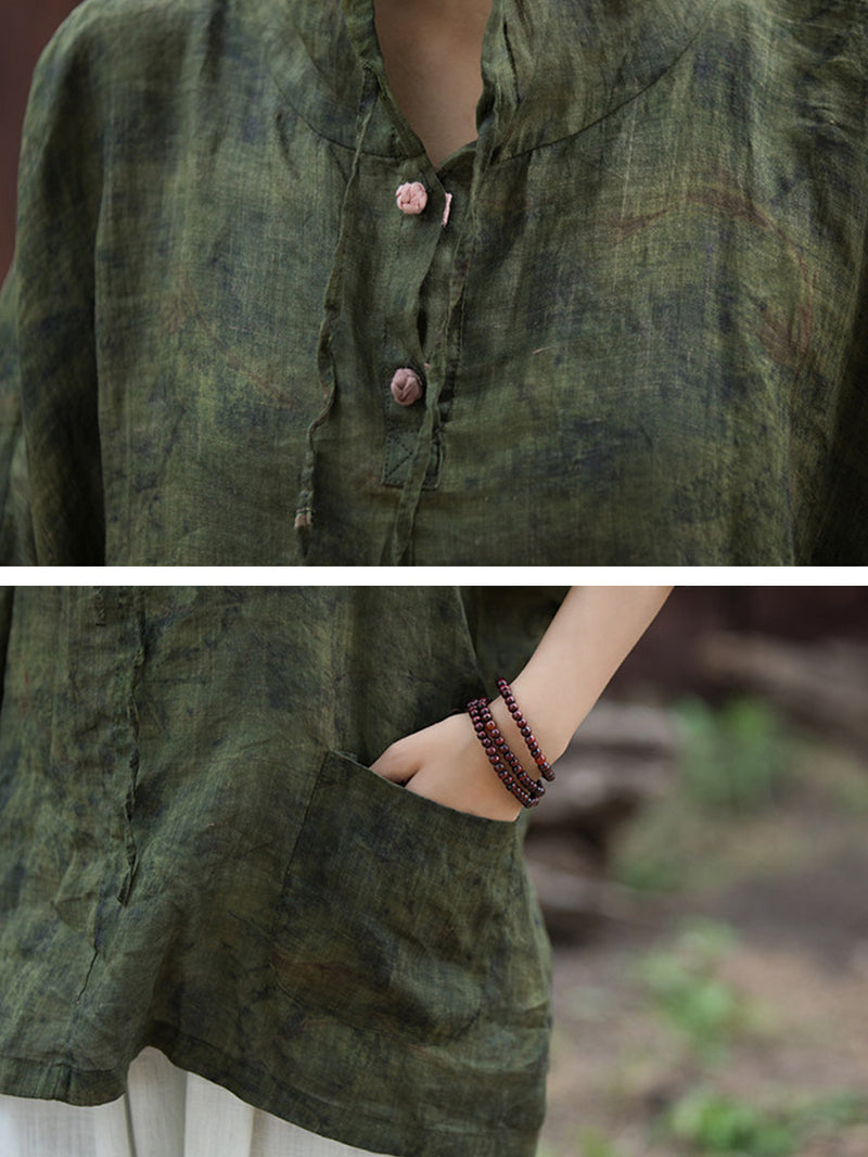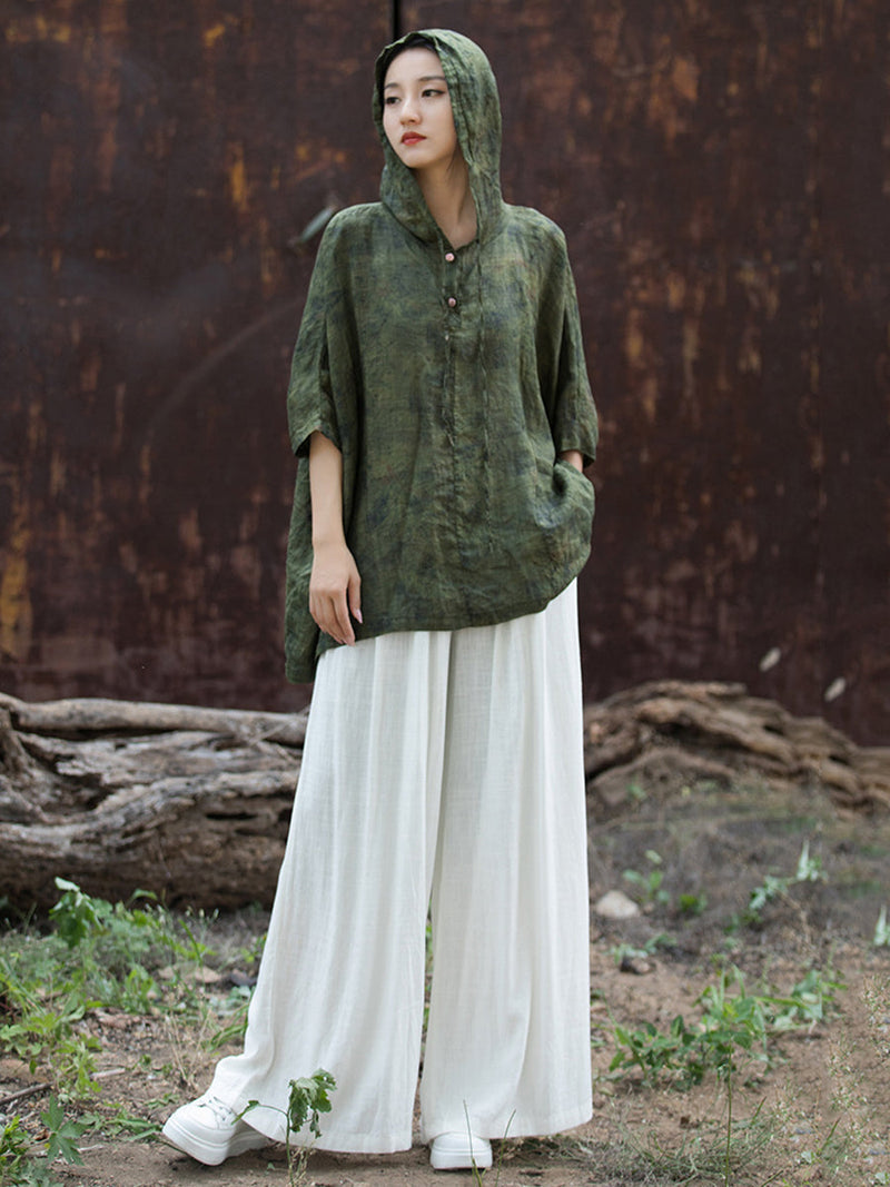 Plus Size Women Summer Vintage Tie-dye Batwing Sleeve Hooded Shirt