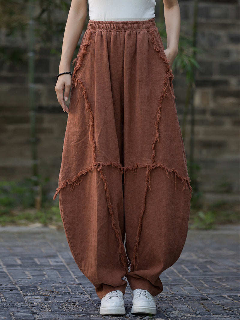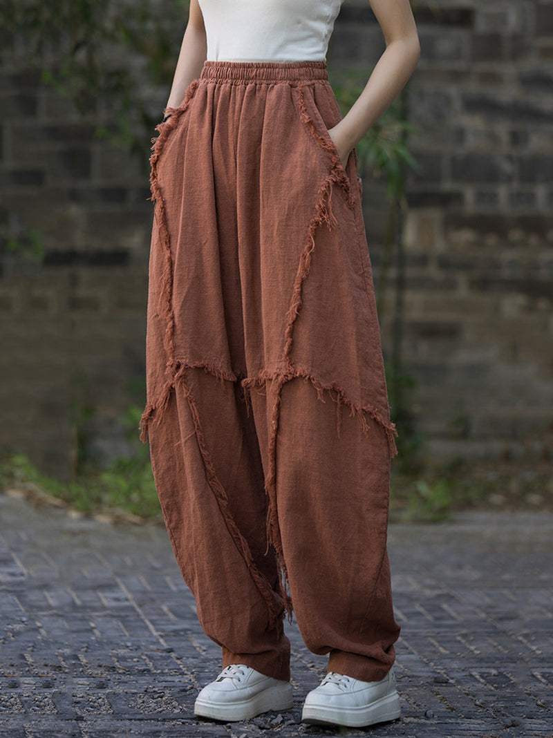 Women Summer Worn Raw-edge Ramie Harem Pants