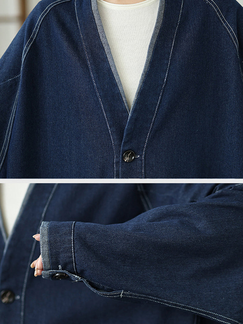 Crafted from denim. this vintage-inspired women's coat features a solid color design and a hooded collar. It offers full-length raglan sleeves with a retro flair. making it an ideal outerwear choice for autumn and spring seasons.