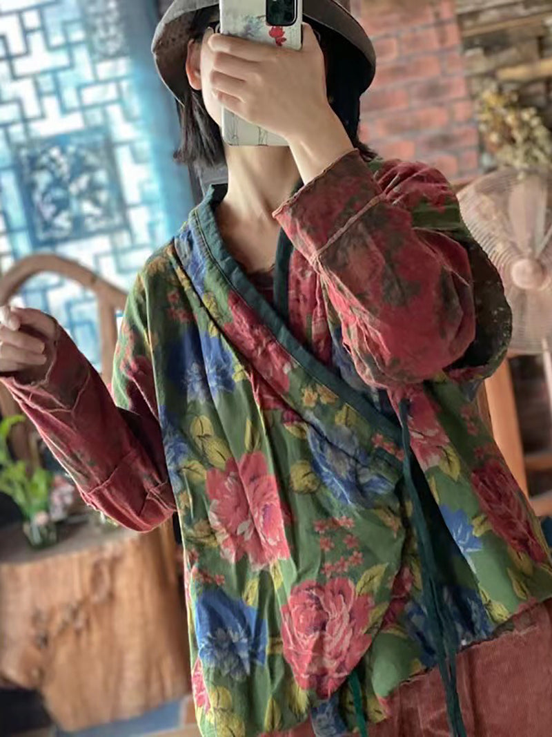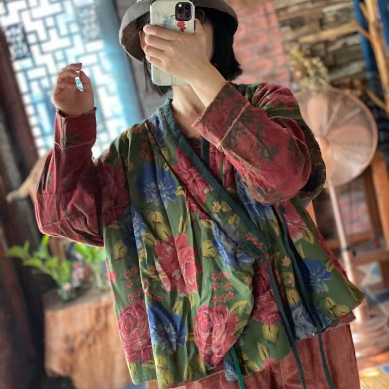 This Women Vintage Spliced Raw-edge Cotton Shirt Coat is carefully crafted with a combination of quality cotton and linen materials. providing a perfect blend of comfort and durability. It features a unique spliced pattern and a classic O-neck collar. while the full sleeves and raglan design add an artsy touch. Perfect for the warmer seasons of spring and summer. this shirt coat is a must-have for any fashion-savvy individual.