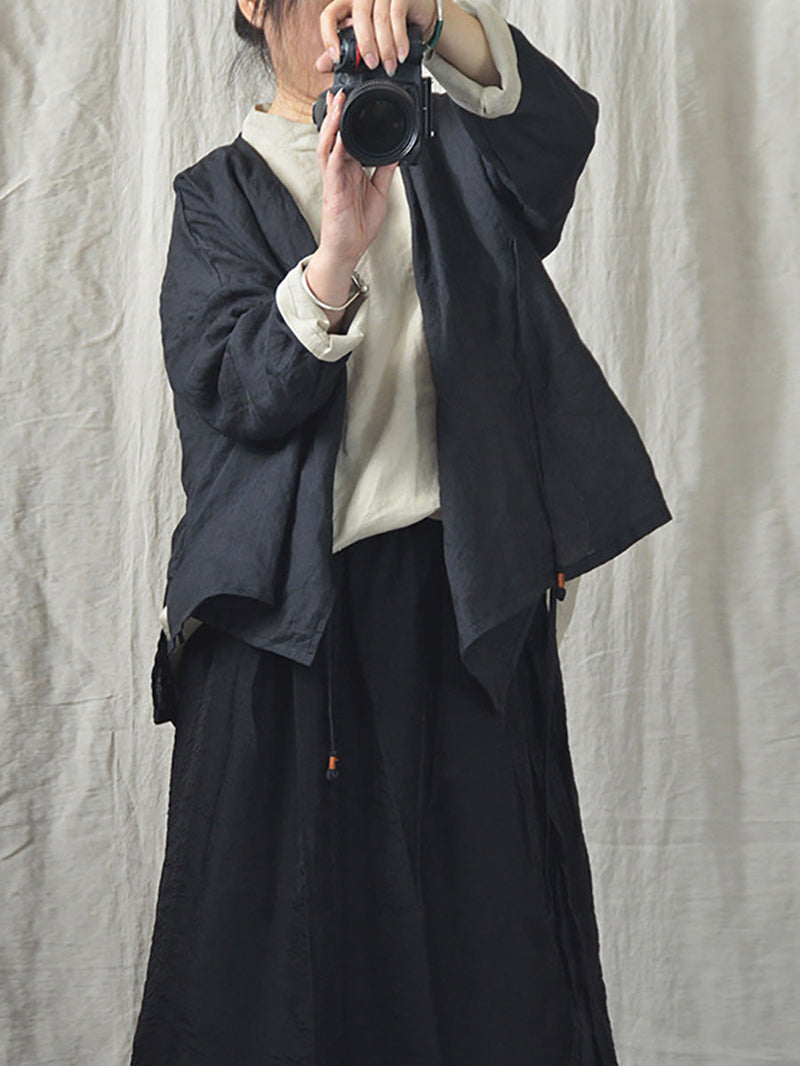 Expertly crafted from 100% linen. this vintage blouse features a solid pattern. a V-neck collar. full raglan sleeves. and a retro style that is perfect for the autumn and spring seasons.