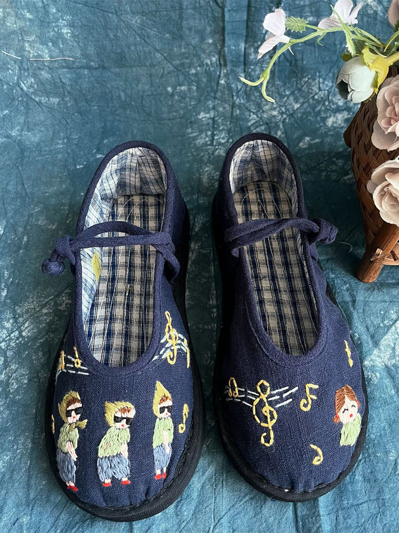Women Vintage Cartoon Embroidery Cloth Shoes