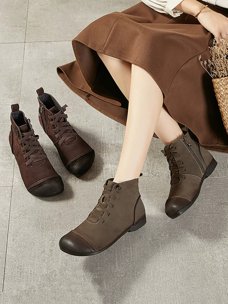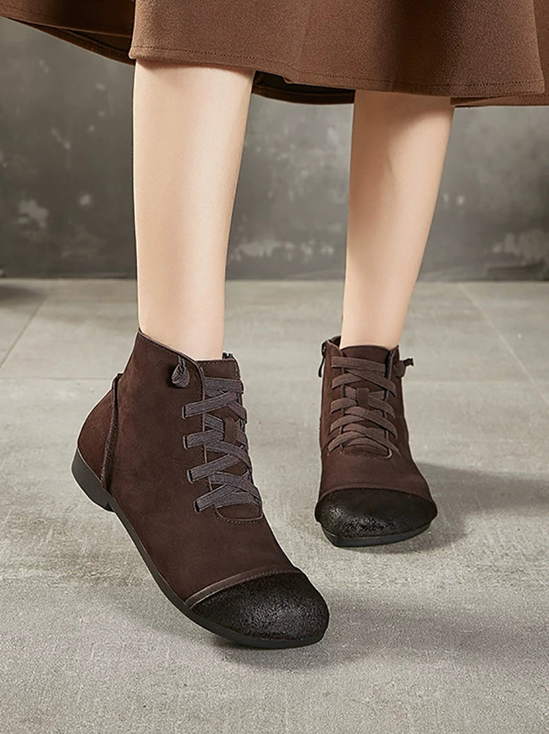 Women Vintage Genuine Leather Spliced Ankle Boots