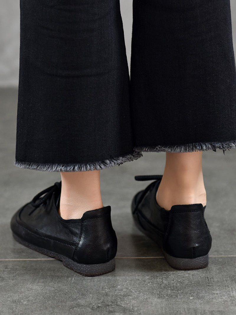 Women Vintage Genuine Leather Spliced Low Heel Shoes