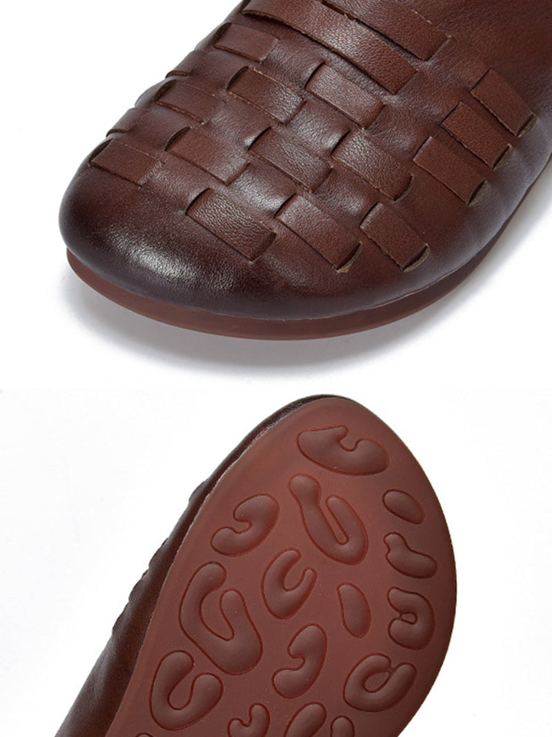 Women Vintage Genuine Leather Weave Low Heel Shoes