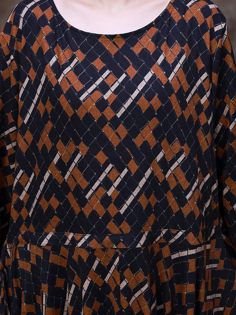 Plus Size Women Vintage Irregular Plaid Large Hemline Long Dress