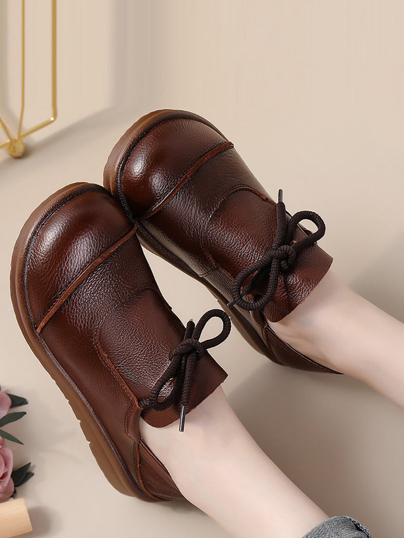 Women Vintage Leather Drawstring Flat Shoes