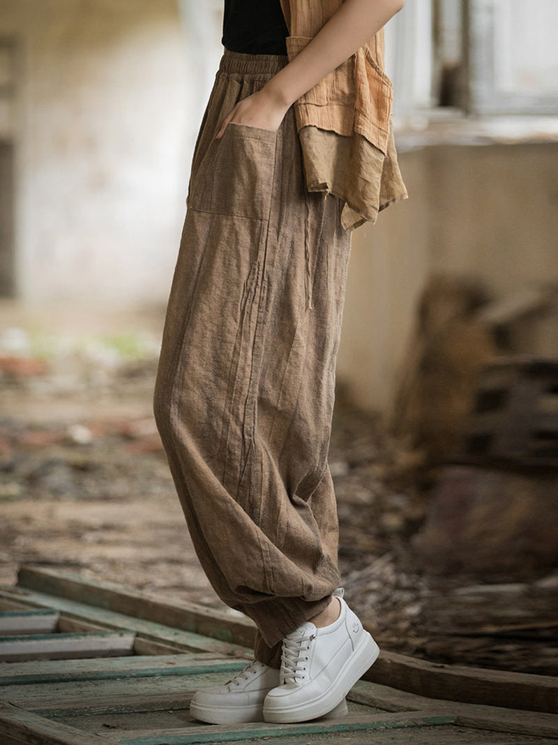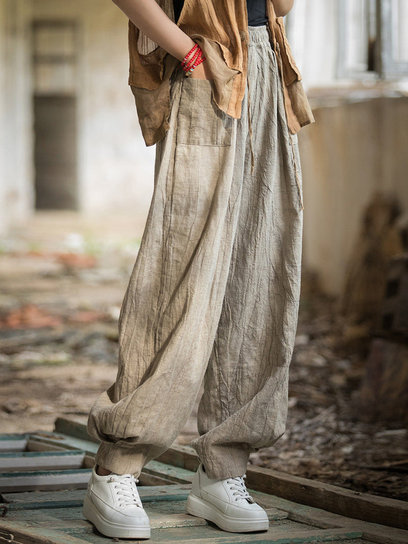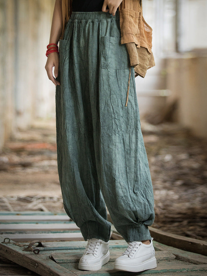 This product is creating a retro style. The waist is elastic and the pants feature a tie-dye pattern. giving them a harem fit. The pants are full length and suitable for wear in both the spring and autumn seasons.