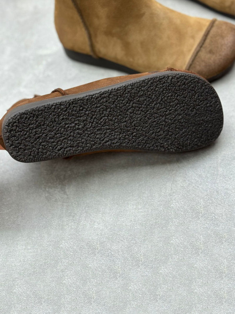 Women Vintage Solid Leather Spliced Ankle Boots
