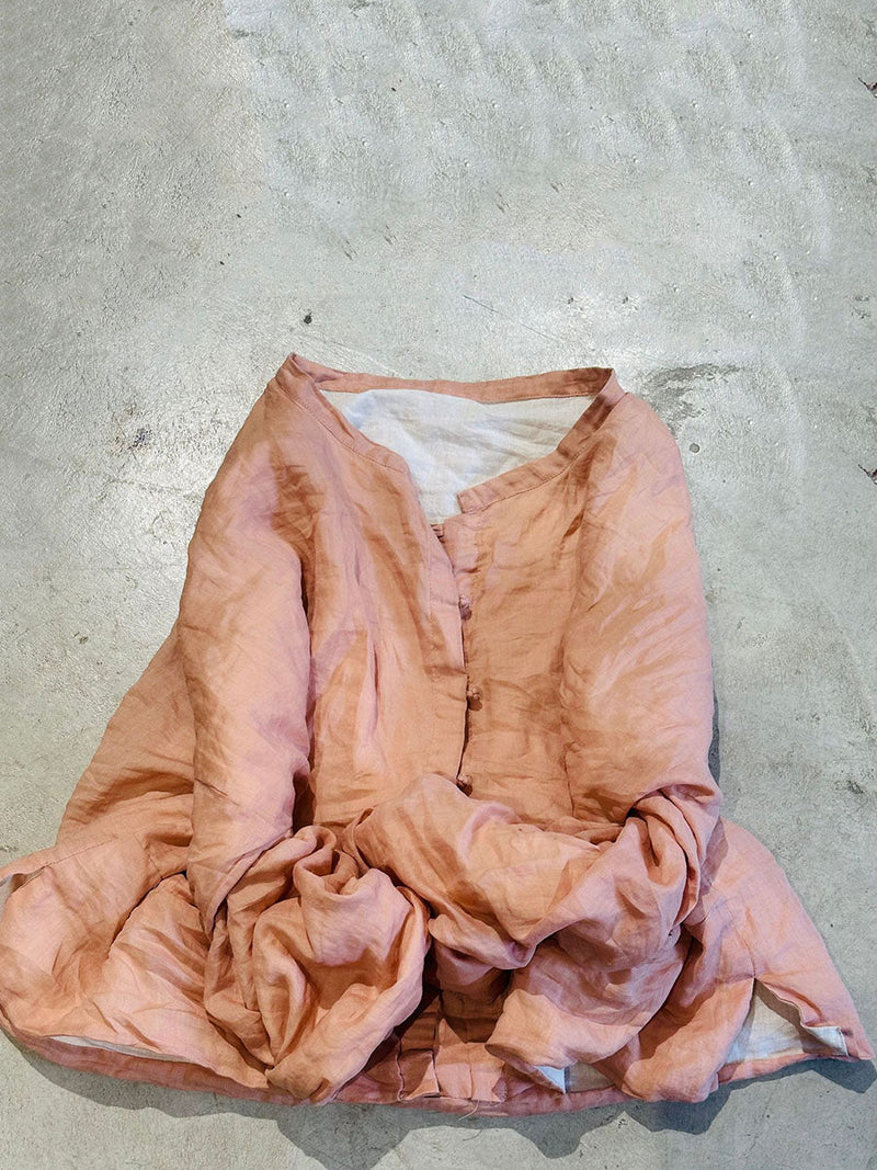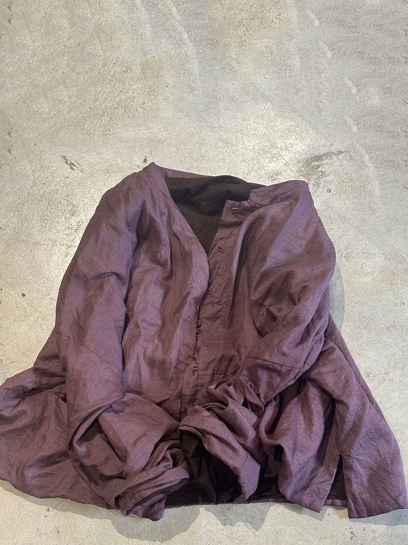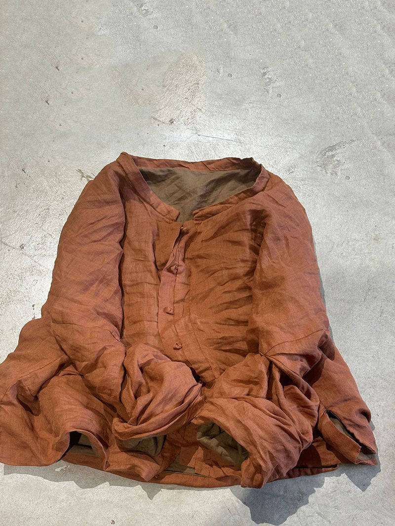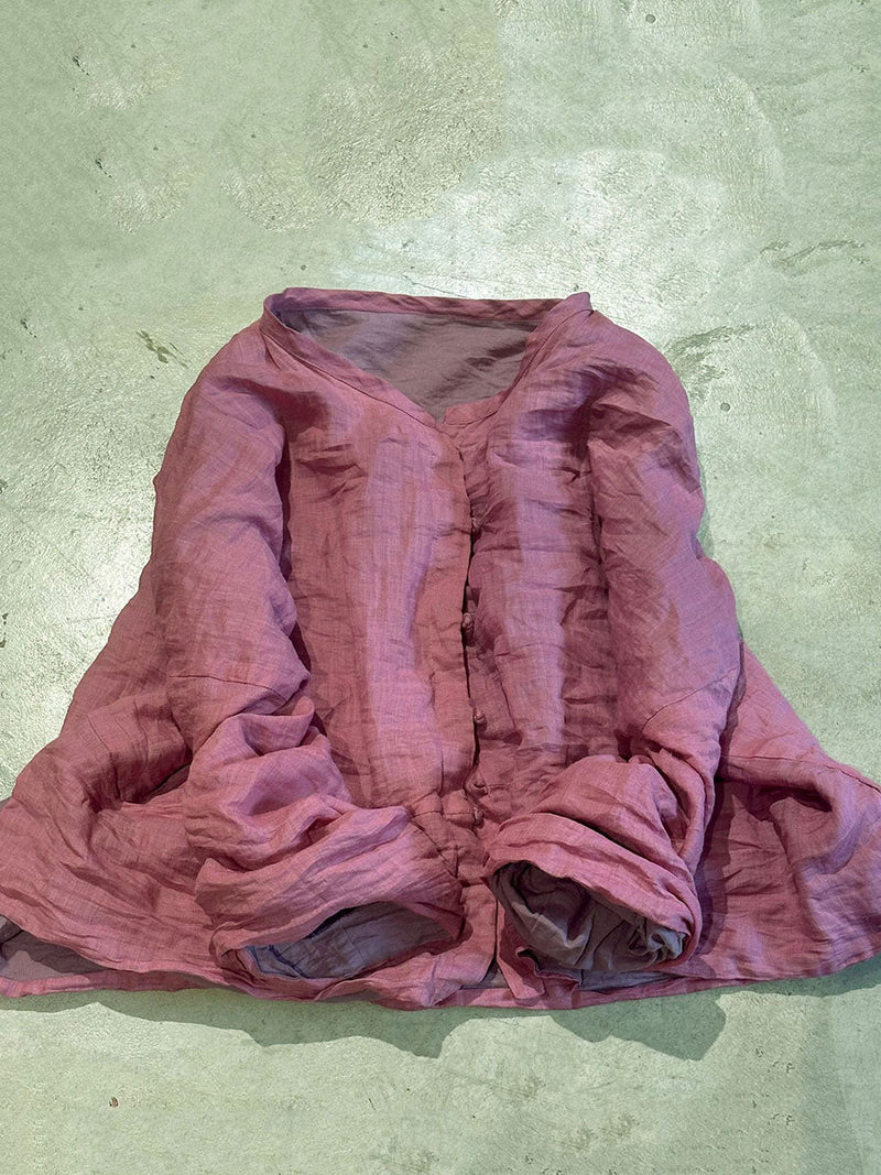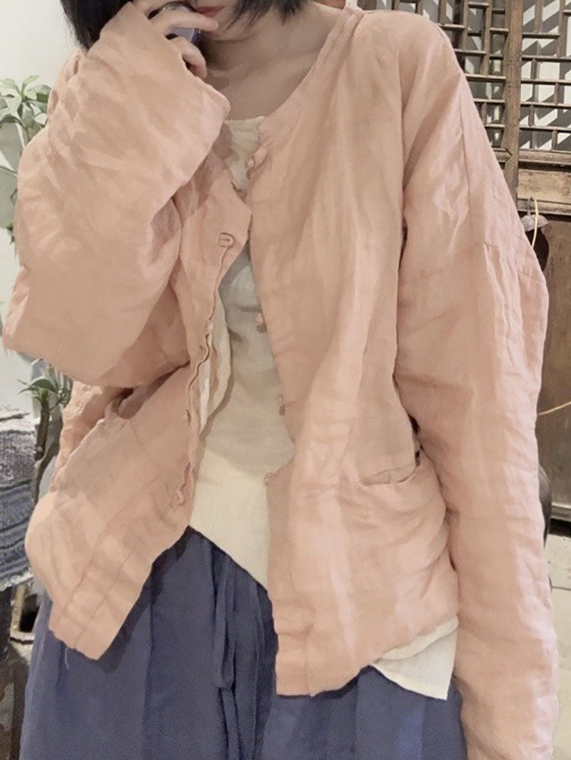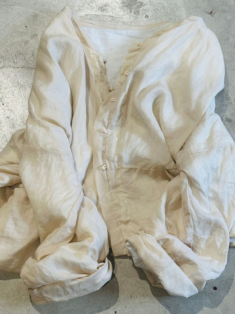 Constructed with high-quality ramie material. this timeless shirt boasts a solid design and a stand collar. accentuating an overall retro style. The full raglan sleeves make it a must-have for the Spring and Autumn seasons.