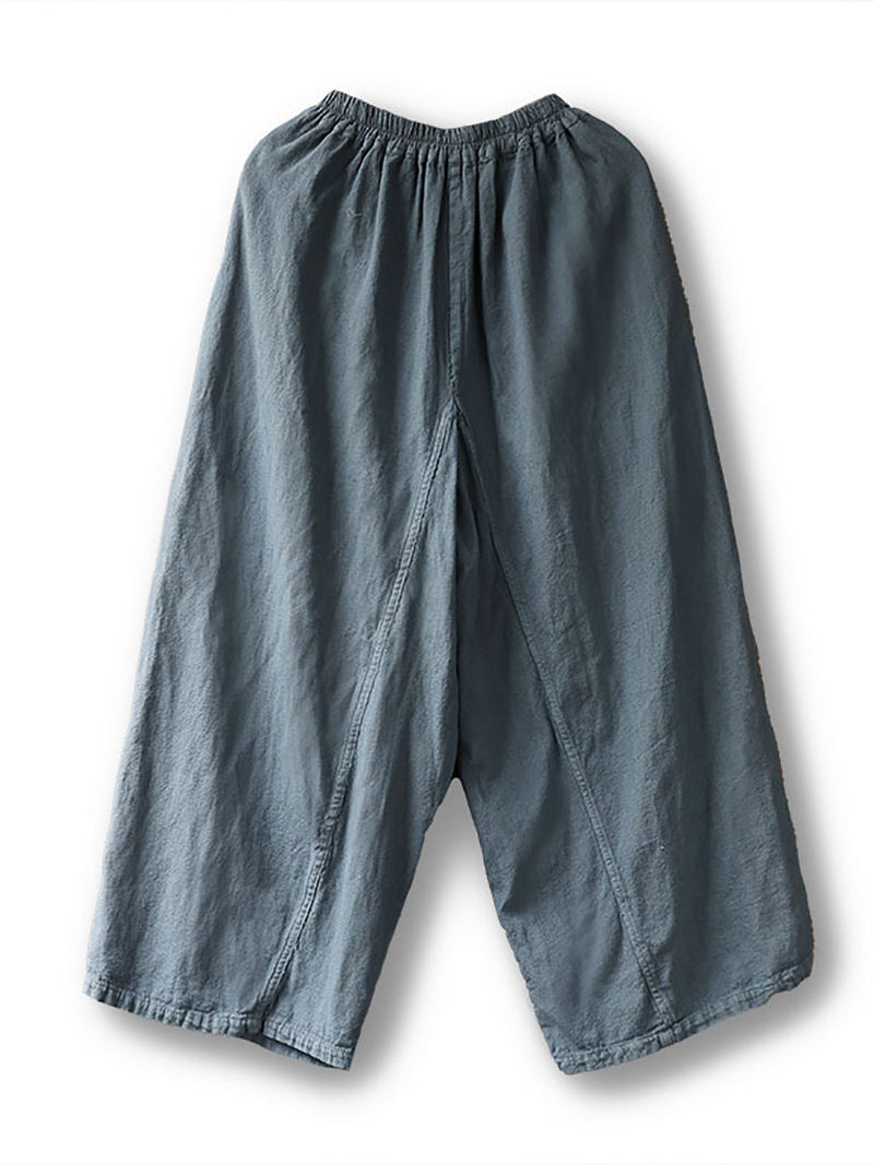 The Women Vintage Spring Spliced Loose Cotton Linen Pants feature a 70% linen and 30% cotton material. giving them a vintage feel. The elastic waist and ankle-length design ensure comfort and style. while the solid pattern and pockets add practicality. Perfect for wearing in the summer or spring seasons.