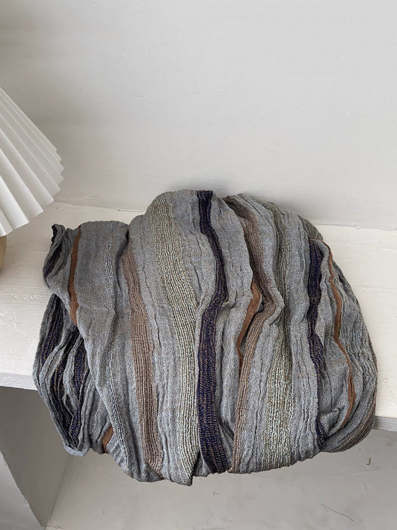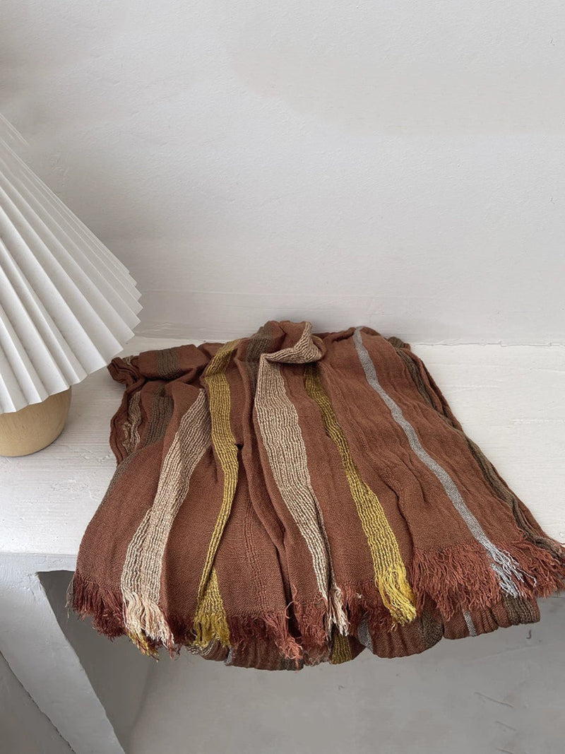 Women Vintage Stripe Raw-edge Shawl Scarf