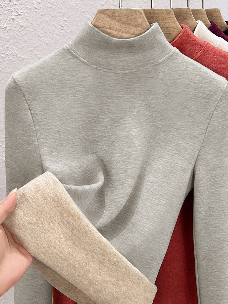Women Winter Casual Pure Color Stand Collar Bottom Blouse