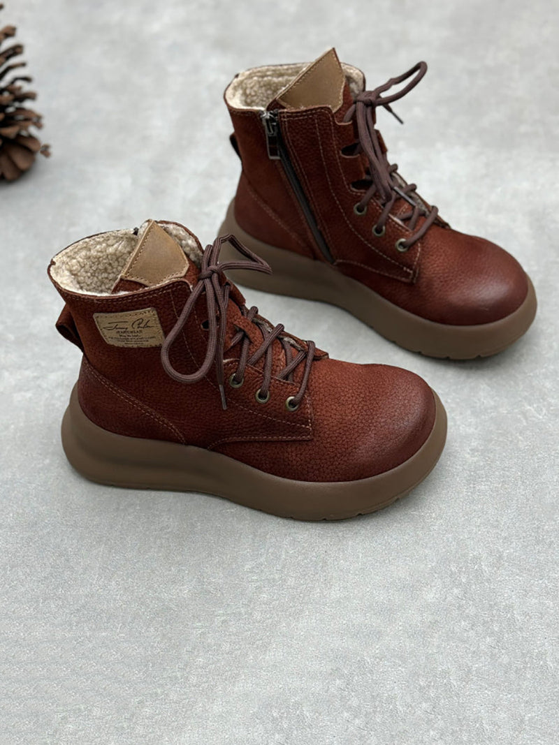 Women Winter Genuine Leather Fleece-lined Ankle Boots
