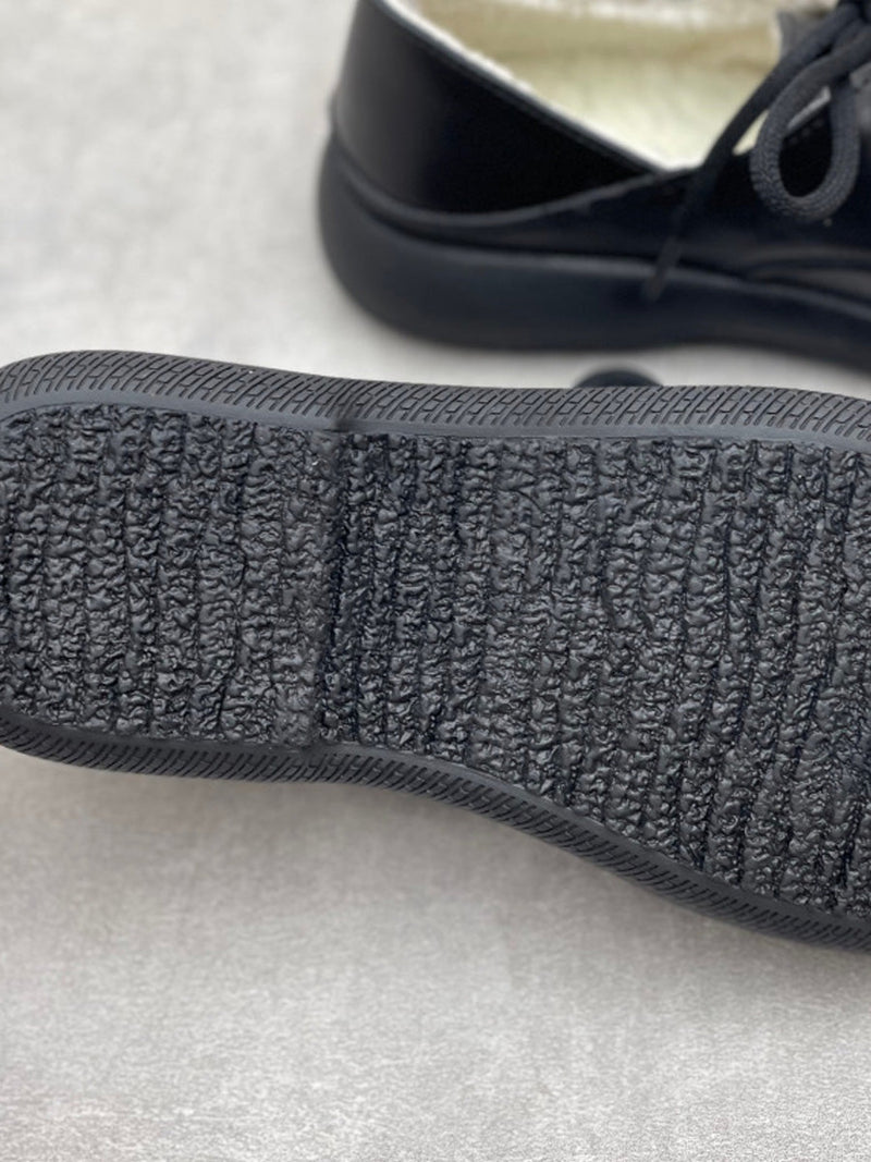 Women Winter Genuine Leather Fleece-lined Flat Shoes