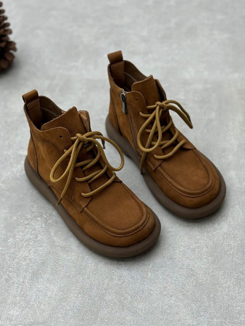 Women Winter Genuine Leather Strap Zipper Flat Boots